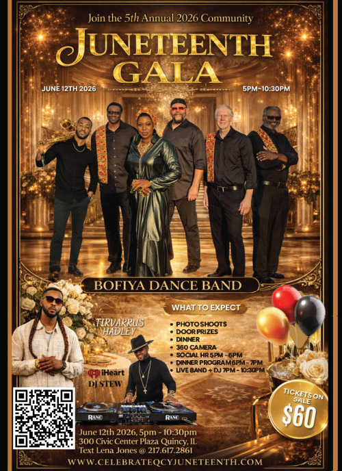 Join us for an unforgettable evening of sophistication and celebration at our 5th Annual Juneteenth Community Gala on June 12, 2026. This year, we are gathering at the Oakley-Lindsay Center (300 Civic Center Plaza, Quincy, IL) for a night of fine dining, high-energy entertainment, and community connection.